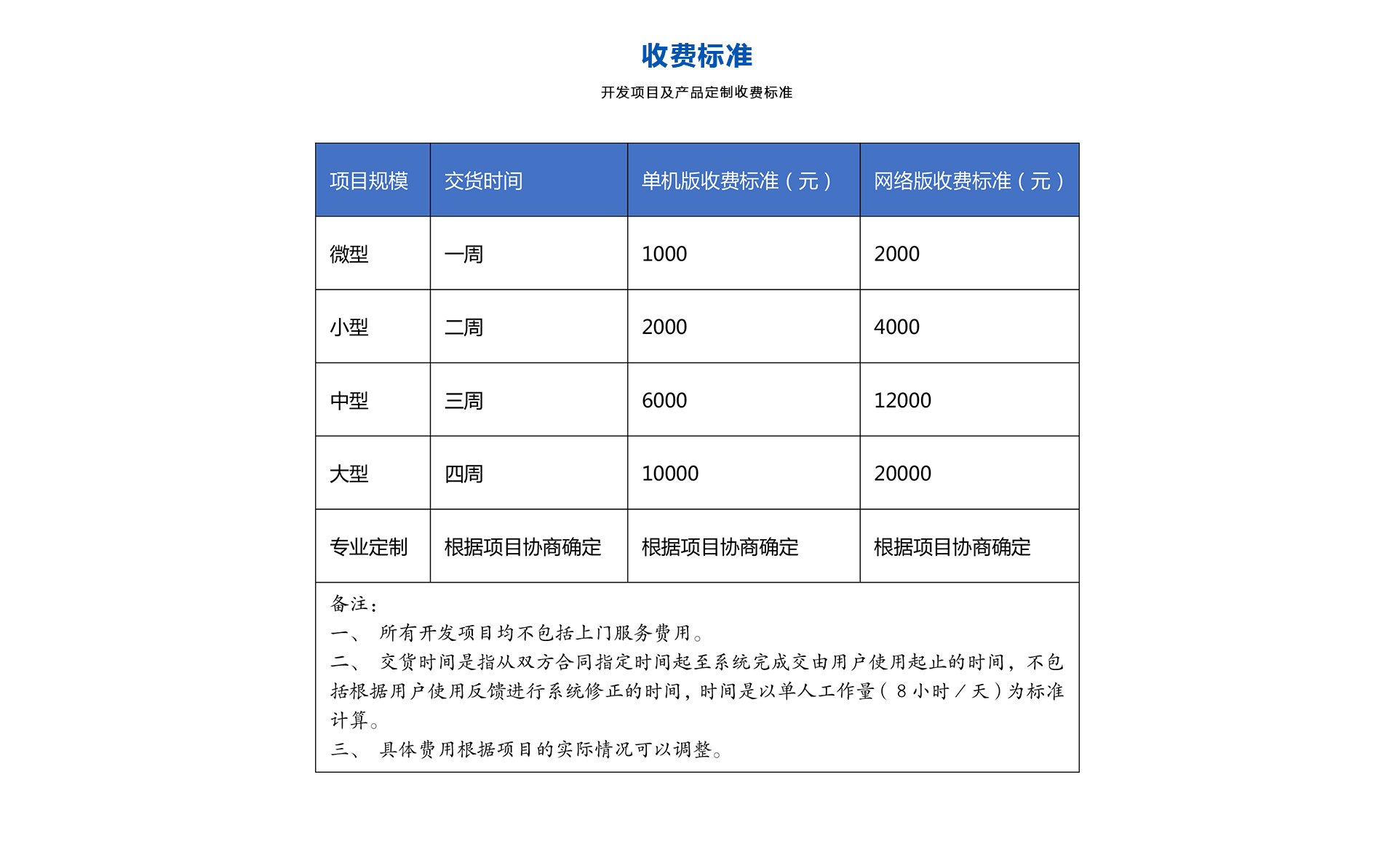 為了適應(yīng)用戶千變?nèi)f化的需求,滿足不同層次客戶的應(yīng)用,聯(lián)創(chuàng)科技為用戶隆重推出專業(yè)的軟件定制開發(fā)服務(wù),以優(yōu)惠的收費(fèi)標(biāo)準(zhǔn),根據(jù)您的要求為您訂做適合自己管理需求的軟件產(chǎn)品!